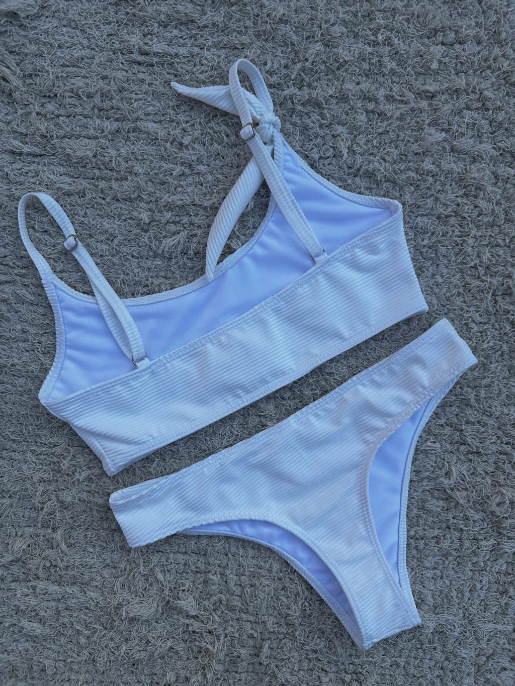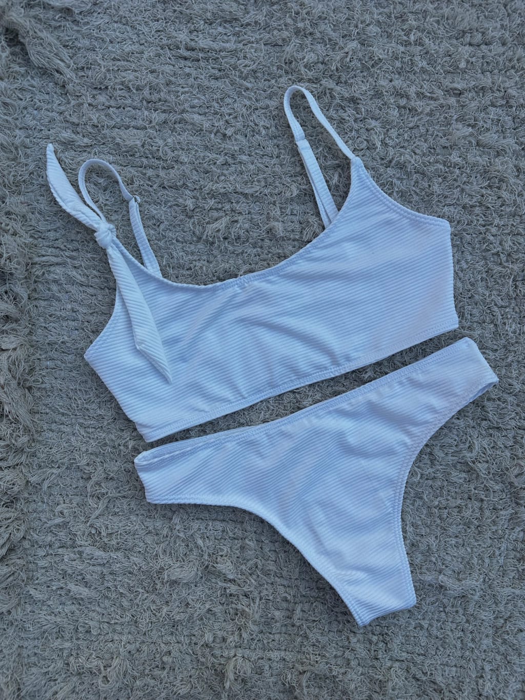 Corpiño top. Breteles regulables. Sin tazas. Incluye lazo desmontable, para atar en el centro.