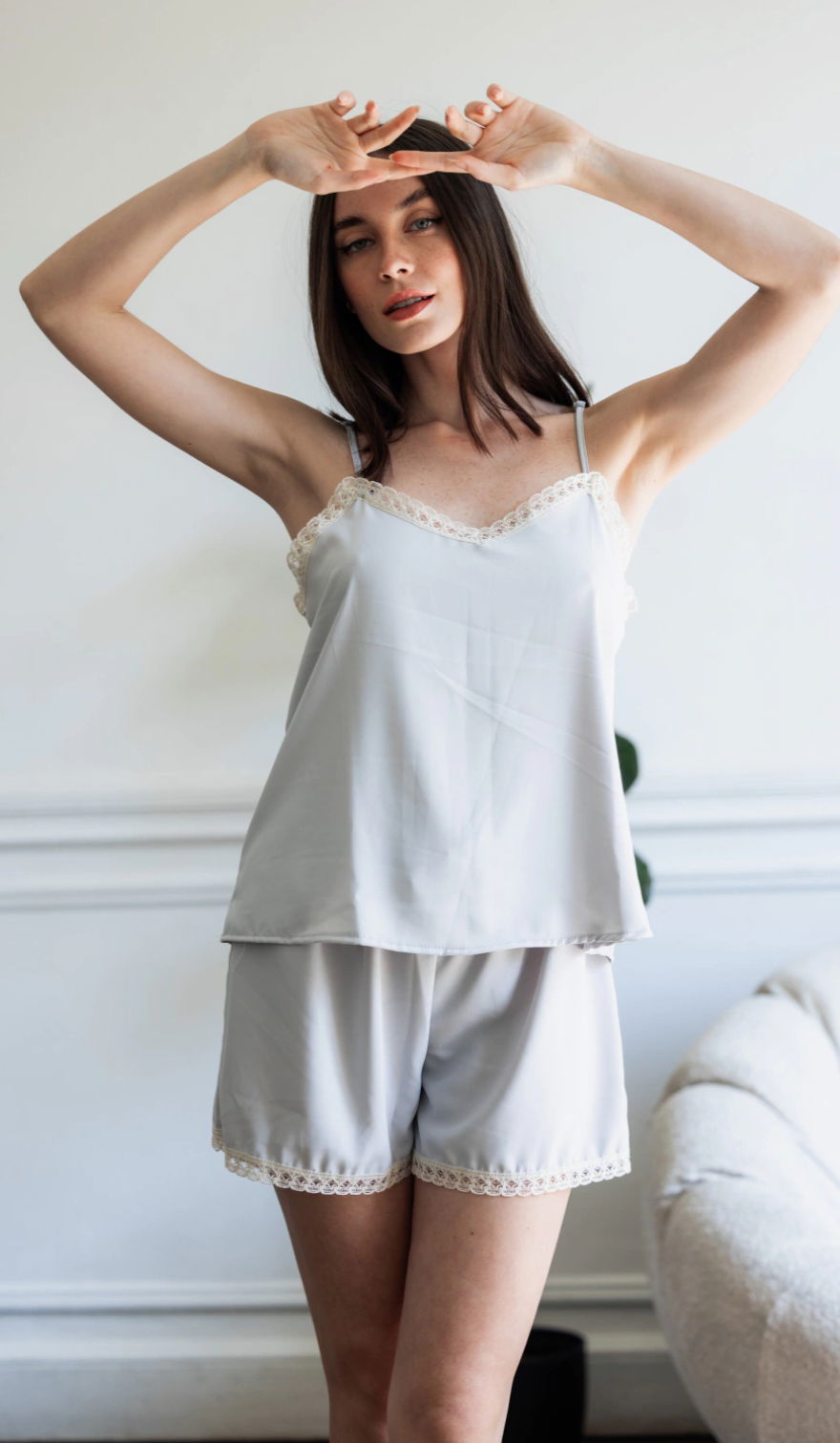 Short y musculosa de seda, con breteles regulables