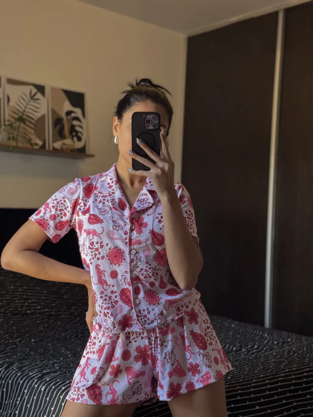 Pijama Corto Camisero - Rosa Flores - Modal Premium