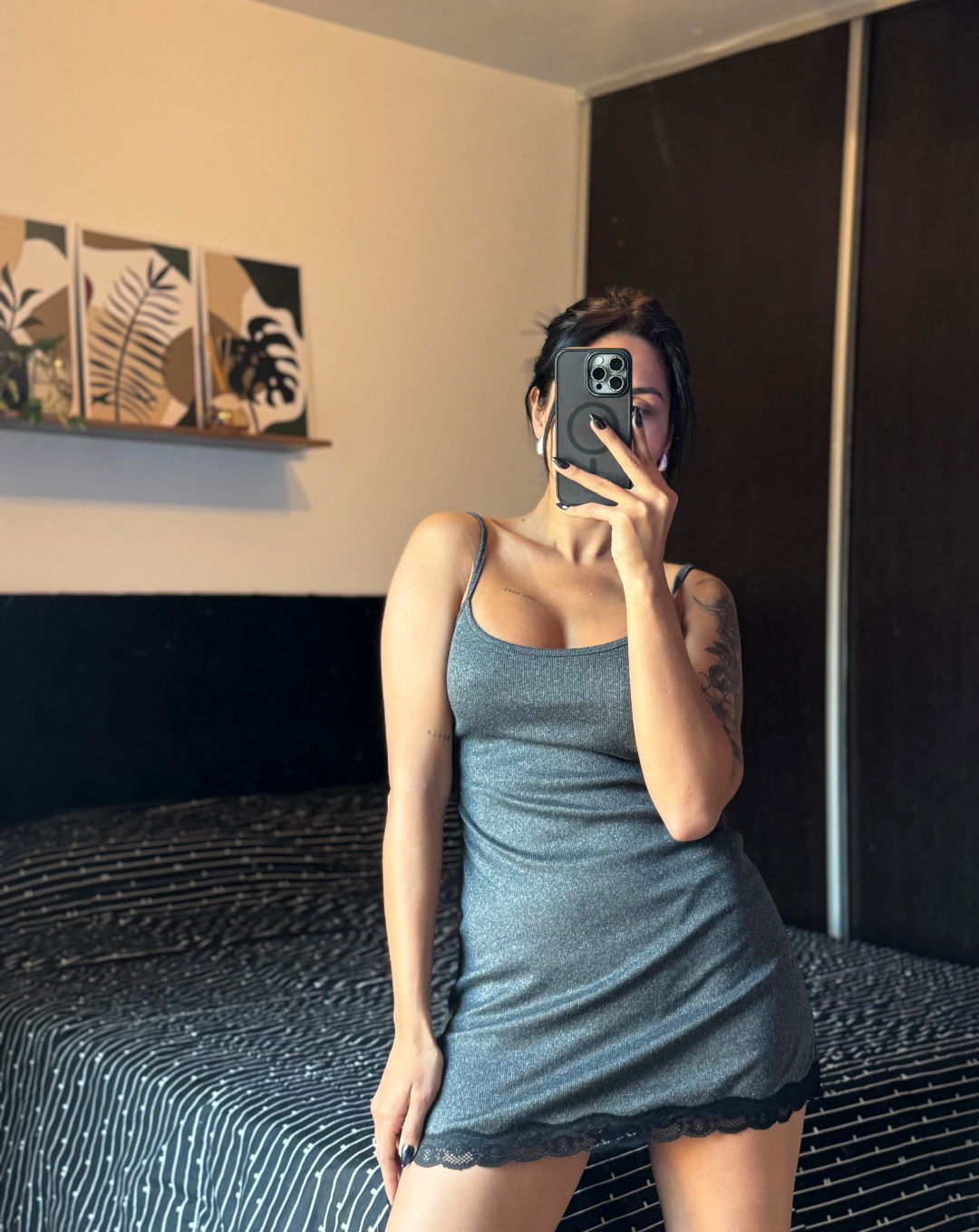 Camisolín con delicados detalles de encaje en la parte inferior, que le dan un toque súper fino y elegante.
