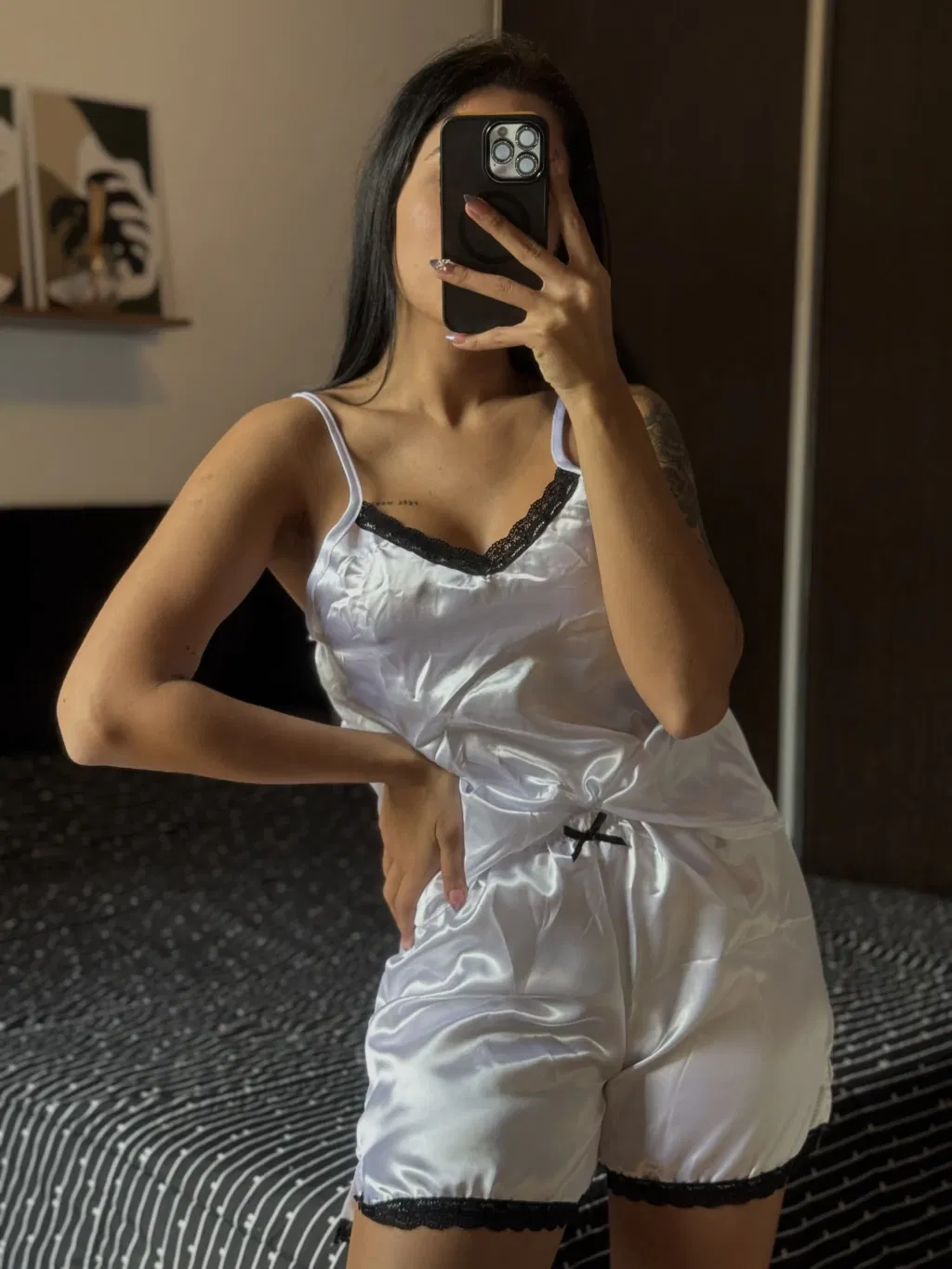 Incluye: Camisa manga corta + short confeccionados en satén elastizado. 🌟 Tela súper suave, elegante y muy cómoda, ideal para estar fresca y con estilo