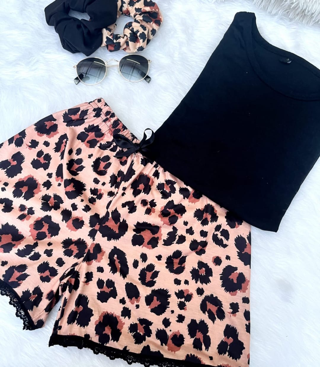 Pijama Corto: Animal Print Puntilla