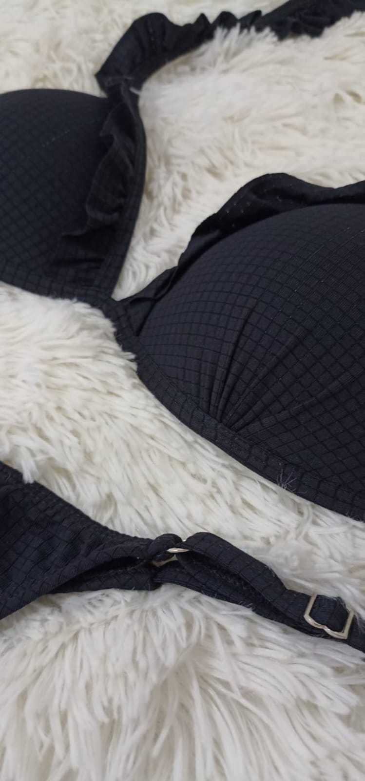 Corpiño con taza armada, sin arco, con tiras para atar.