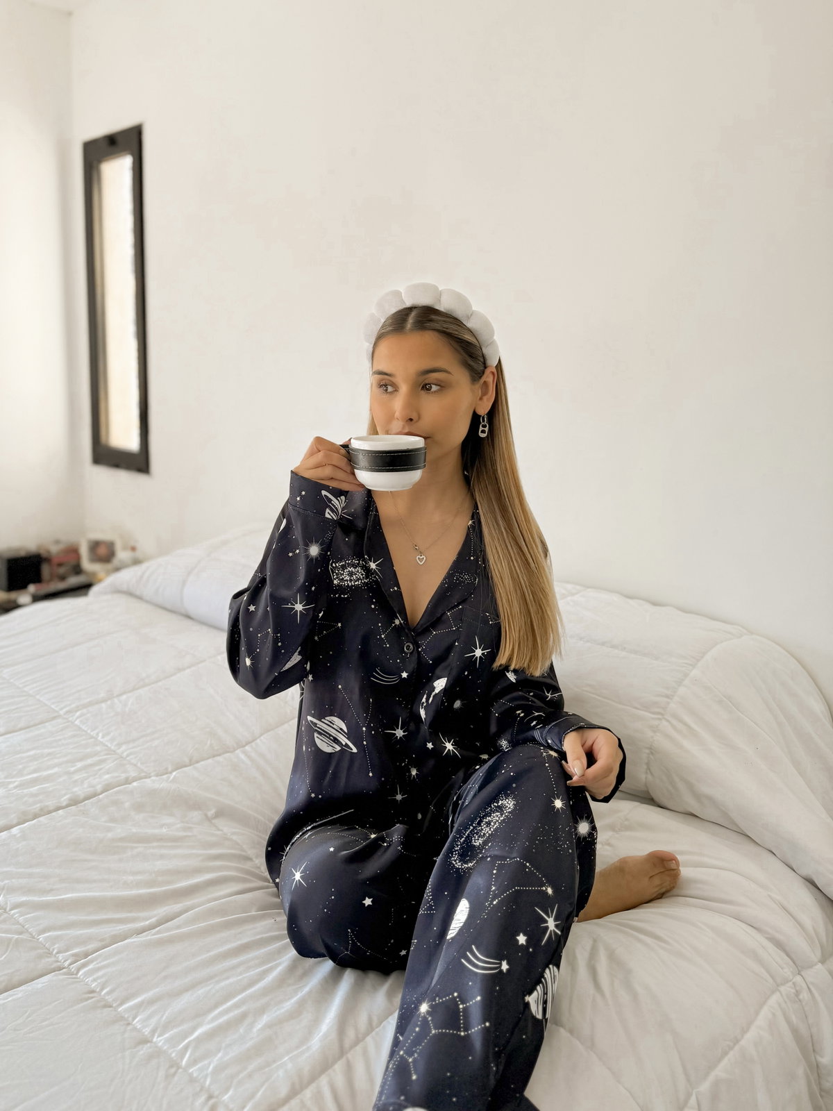 Pijama Largo Camisero Satén - Constelaciones